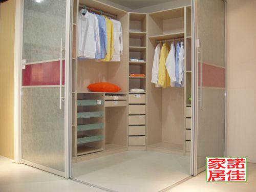 ,对于衣帽间的推拉门,一般厂家所做的门均为单面门,即两面的门没有区别,只有正面会有一些外型的变化,诺佳推出的推拉门有一种双面推拉门,即门的一面为正面,而在衣帽间内的一面设计成了一面