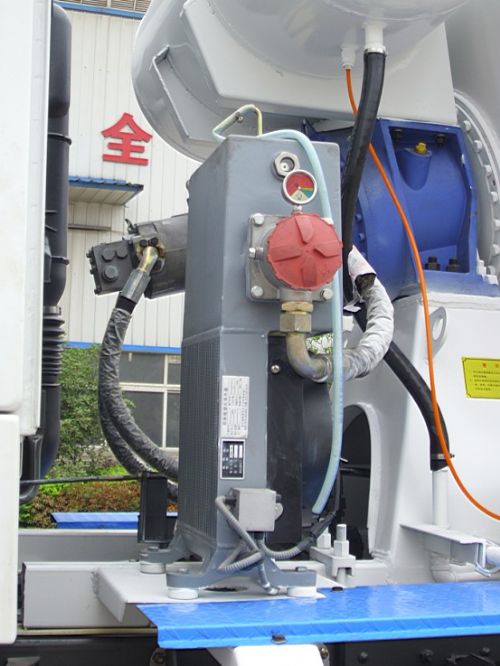 液压马达,液压马达把液压能转化为动能并通过减速机减速增扭传递到搅拌罐,通过调节(双作用变量)液压泵的伺服手柄角度从而实现搅拌罐正反转及转速的大小,以实现砼装料、搅拌、搅动、出料等作业。