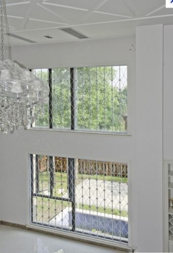 防护窗(专利号:02110917.6)由上下金属导轨和可折叠的若干高强度钢环及金属支杆等零部件组成。可安装在建筑物的窗框内侧,也可安装在窗框外侧,还可用于房门或通道的防护。产品为全