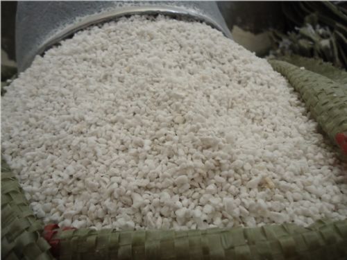 是由酸性火山玻璃质熔岩 (珍珠岩)经破碎,筛分至一定粒度,再经预热,在1200℃以上高温延时烧结而制成的一种白色或浅色的优质绝热