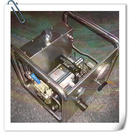 适用油、水及其他有腐蚀性、低粘度液体介质。常用来作为拉伸器等液压工具的动力单元。以2-8公斤压缩空气为动力源,利用大面积活塞端的低压气体驱动而产生小面积活塞端的超高压液压油: