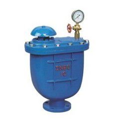 泵管道及时出现负压会引起管道振动或破裂,排(吸)气阀就迅速把空气吸入管内,防止管道振动或破裂。作用原理:当水进入管内时,浮球停在球桶下部进行大量排气,当气排完时,水进入阀内通过球桶把球浮起到关闭,停止排气,管道在正常运转时自然会产生少量气体,这时气体会集中到管内上部到相当程度,阀内水下降,浮球顺水下降气体从小孔排出。如出现停电停泵,管内水流空时,随时出现负压,浮球顺水下降,打开小孔带动大孔进行大量补气确保管道安全。注:排气阀在使用过程中压力不低于0.03Mpa,如低于0.03Mpa排气阀容易漏水。必须配一只阀门作为检修用。