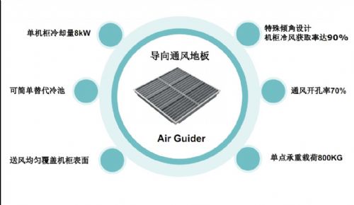 2. 精确导向送风,直接冷却发热源(采用传统的通风地板开孔为直上直下,空调冷气流是向上直吹,得世通通风地板采用叶片导向倾角设计,使空调冷气流直接