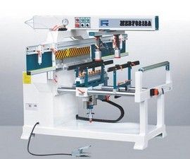 纤维板、人造板等木制品的榫眼加工。该机具有生产效率高,操作简单灵活、加工精度高等优级点。可以对板件垂直、水平面同时钻孔 。机器采用自动化控制,工作过程均为气动装夹工件,气动进给刀具,具有一次性加工多个孔位,一次设定可连续多次操作及在控制面板显示出总的加工次数的功能。其中, 钻排可在0~90°间作任意旋转,方便了工件多方位的加工;机器采用无横梁