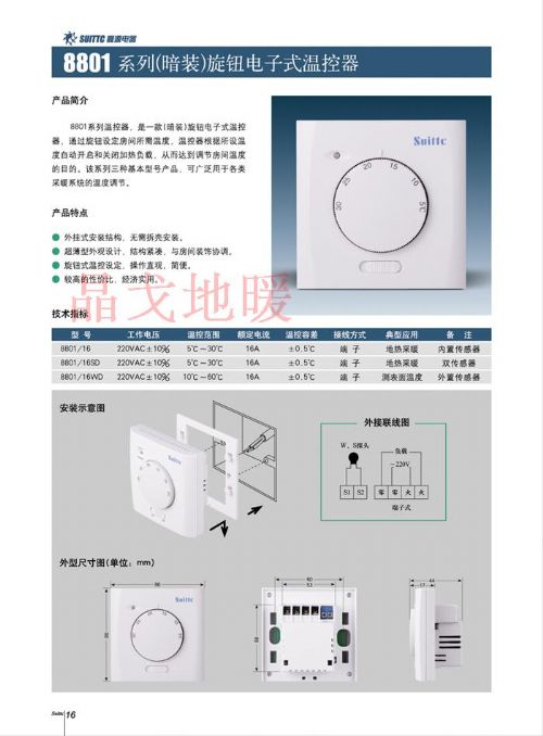 备注:用于电采暖的时候,需要加外置地探头来限温,用于限高温保护电采暖设备的功能