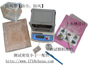 2将颗粒倒入烧杯测量空气中重量记录W1 然后让颗粒倒入水中的网球里测量水中重量W2,然后直接读出密度及体积