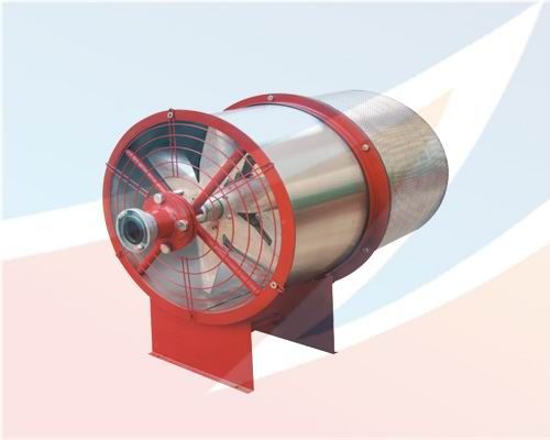灭火设备,在有混合液水供给的条件下,就可以进行灭火。高倍数泡沫发生器适用于封闭小空间的全淹没式灭火。其工作原理是用0.3~1.0Mpa的压力泡沫混合液驱动水轮带动风轮旋转,混合液经过喷头把泡沫液以雾状形式喷向发泡网,在网的内表面形成一层薄膜,有风轮吹到网上的风,吹胀成大量的气泡,构成为高倍数泡沫,淹没或覆盖燃烧物体的表面。利用泡沫的遮断,冷却和窒息作用达到灭火目的。