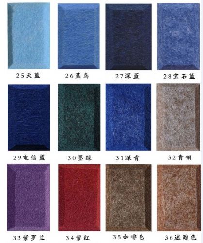 是一种理想的装饰吸音材料,是以聚酯纤维为原料热压成型制成。在125~4000Hz噪声范围内*高吸音系数达到0.9以上,可以调节混响时间,清除声音杂质,提高音质效果,改善语言的清晰度。