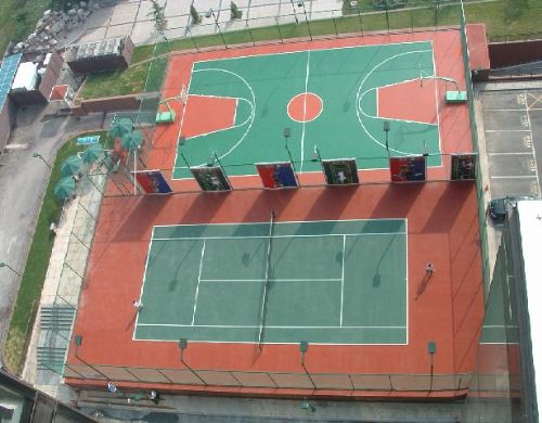 塑材软垫及丙烯酸涂面系统,其厚度约为3-4mm。内含百分百无机性纤维颜料,铺设在已冲洗干净值良好及排水斜度(1:100至1:150之内)的水泥或沥青地面基础上。