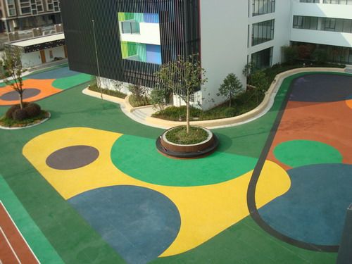 适用于幼儿园地面,大、中、小学跑道、公园、花园小区、游乐场等地面,是传统产品的新型替代品。