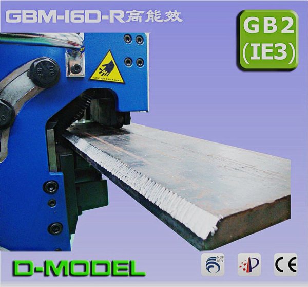 GBM-D系列是搭载了全新的IE3超高能效标准电机的自动钢板坡口机,运用进口电机和减速机的GBM-D系列产品比C系列更加高效节能、在2014年的 销售中我们已经为GBM-C系列的部分客户替换了IE3标准的电机,经过长期测试,GBM-D更加稳定、省电、高效、静音(空载时几乎听不到声音,工作时 仅听到咬下钢板的声音)。