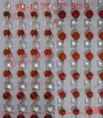 一是普通塑料芯电镀上色的珠帘。这类珠帘一般由机器制作,用麻线连接,材质轻盈价格低廉,色彩强烈闪烁(以鲜红、金银为主),比较适合时尚家居或者是娱乐场所,能营造出现代时尚的感觉。美中不足为电镀上色的光亮度只能保持一年左右。