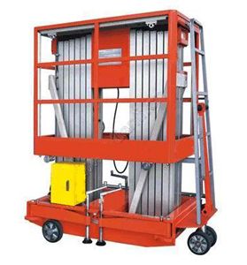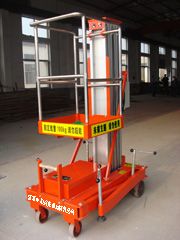 升降平台: 由单桅柱支撑作业平台,是*早出现的铝合金升降机。整机重量轻,移动灵活,适用于单人操作,缩合后能进入一般标准门道和大楼的电梯。