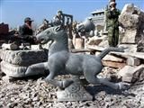 “拴马桩”是广泛流传于乡村的民间石雕品,也称“拴马石”。在农家宅院,门前用以拴马、牛等牲畜的石雕桩。雕刻精美的拴马桩称“样桩”、“看桩”。拴马桩所用石材多是灰青石、黑青石,少数用细砂石。一般大型的通高约300厘米,中型的约260厘米,小型约230厘米。石桩分四部分:桩头是石雕的主要部位:桩颈(台座)承托桩头,一般为上圆下方,其上浮雕莲瓣、鹿、马、鸟、 兔、 云、水 、博古等图案;桩身,少数刻串枝纹、卷水、云水纹;桩根则埋入地下。桩头圆雕,有表现人物,人与兽和多人物组合形象,也有表现神话故事人物如寿星、刘海、仙翁等。动物形象则有狮、猴、鹰、象、牛、马等。较精彩的是人骑狮,多在