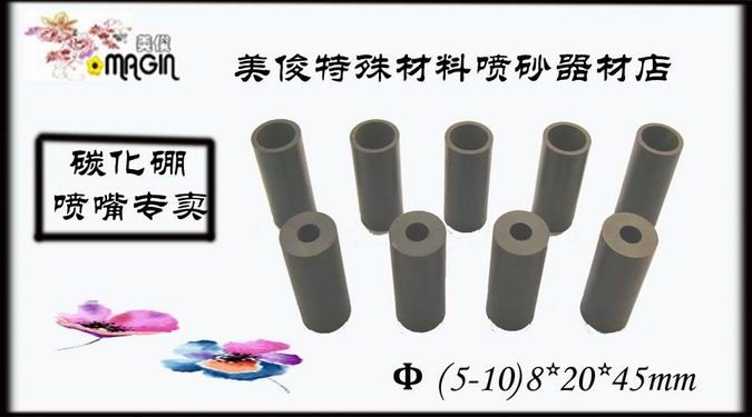 具有与碳化硼相同的性能,极硬又耐磨,与酸碱不起反应,耐高、低温,耐高压,密度≥2.46g、cm3;显微硬度≥3500kgf、mm2,抗弯强度≥400Mpa,熔点为2450℃。因碳化硼喷嘴具有的以上耐磨高硬度的特点,碳化硼喷砂嘴正在逐渐取代已知的