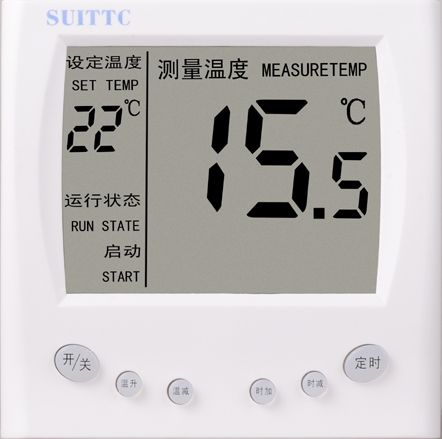 温控器主要用于电热采暖、水热采暖的温度控制。是一款(暗装)大屏幕液晶显示温控器,具有定时开关功能, 通过键盘设定房间所需温度,温控器根据所设温度自动开启和关闭加热负载,从而达到调节房间温度的目的。