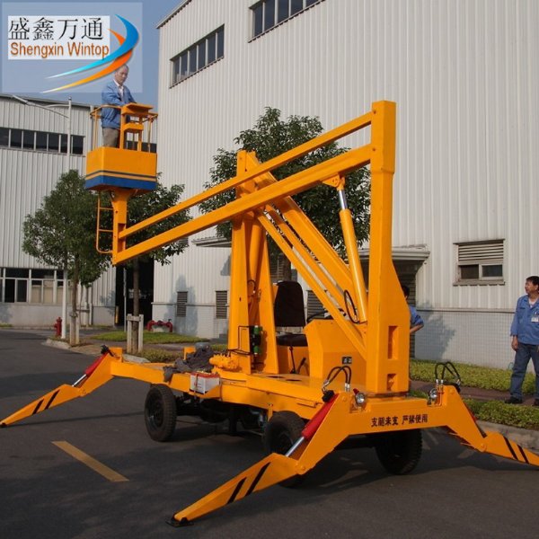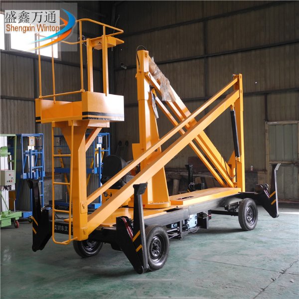拖车曲臂式升降机:可以挂在汽车上,与汽车同步,适合野外高空作业。升降方式:1、用380-220V电源2、用电源不方便,可以用电瓶驱动升降。外型美观,行走方便。