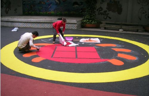 EPDM面层采用手工铺设,这样可以确保面层的密实度,增强使用效果和使用年限。首先将EPDM胶粒和