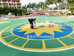 搅拌机中充分搅拌,搅5-10分钟左右,使EPDM胶粒表面完全被聚氨酯胶水湿润。根据需要适当加一点催化剂,两套设备交互使用。搅拌完成的材料用小斗车运至施工现场,根据画好的线先进行三秒区和中心圆施工,施工时应注意倾倒胶粒均匀,勿使过分集中或分散。设计面层为6mm,施工时应使用5mm的压条进行手工作业,作业时,还应加压收平,确保面层的密实度。在一批一批施工当中,随时检查厚度,如发现出现不匀要随时调整,千万不要露底。施工当中,修边的人一定跟上步调在保证质量的前提下尽量与刮料人同步施工。由于公司施工人员技术精湛,配合时间长,所以人员配合好、手熟练,能够匀速铺设,不会因为时快时慢而造成不必要的拼缝或高、低,新、旧之分。铺设完三秒区和中心圆后,即可使用另一种颜色EPDM颗粒按设计要求,铺设其余的部分,在不同颜色胶粒搅拌之前,应把搅拌机和其余需要的工具清洗干净,避免色彩上的相互混杂。EPDM颗粒在手工铺设完毕后,应该在48小时后,用胶水喷涂一遍表面,加强面层的使用效果和使用年限。喷涂胶水时,应薄而均匀,且应在无风无尘的条件下进行喷涂。