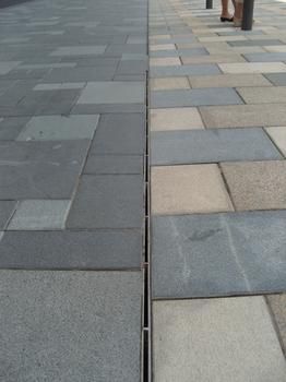 成品排水沟起源于欧洲国家,就是在铺装面上仅留下一条窄窄的排水缝隙,效果比较隐蔽美观。