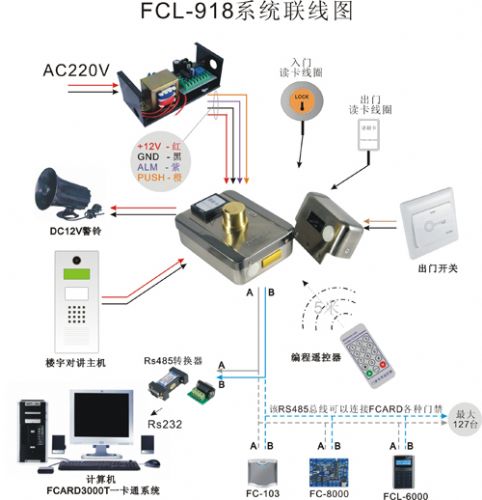 技术参数:工作电压:DC9-15V 工作电流: <500mA 工作温度:-10℃-75℃ 工作湿度:10-90% 读卡速度:<0.2秒 感应距离:0-80mm 用户容量:1000组(可扩充到6万人)记录容量:1000笔(可扩充到3万笔)读卡类型:支持ID卡或IC卡 无线遥控:支持433MHZ