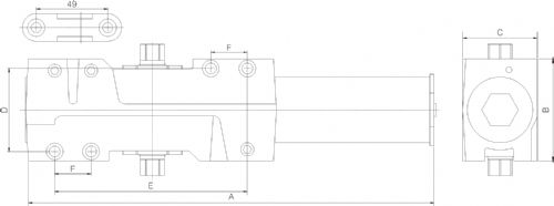 采用铝合金材料压铸而成。外形轻巧美观、结构合理、性能良好、规格齐全,属于经济性极高的产品。可选择门上垂直、上门框垂直、平行及