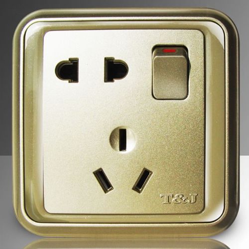 天基经典系列10A 一位二三极插座带开关香槟金色