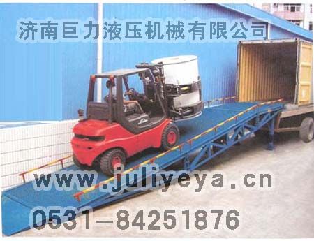 手动泵、格栅板、支撑腿、轮胎等部分组成,移动式登车桥主要应用于无装卸平台、装卸位置不固定、装卸场地比较狭小的场合,实现了货物快速装卸。通过它使