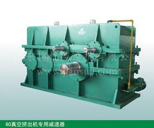 挤出机有以下结构特点--上级为双轴搅拌,下级为主轴挤出,双副轴压泥板的三轴输出结构,而配套使用的减速机为单轴输出,为此砖机厂需另行制作分齿箱与
