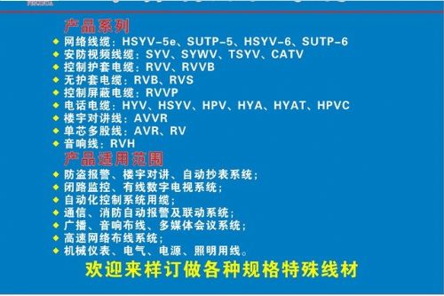 监控系统、无线电通讯、传输系统及单向系统控制或高频率机器内部配线