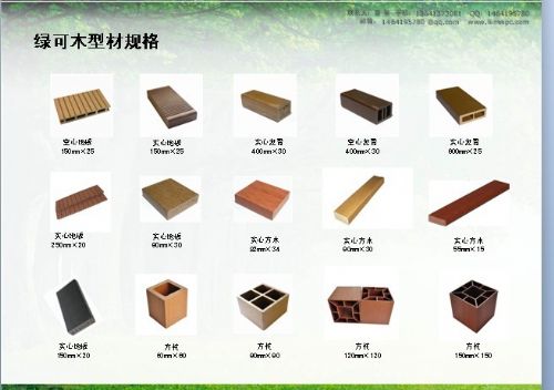 绿可木塑是绿色节能环保产品。产品具有天然木材纹路、色泽、质感以及高分子材质特有的防水、防火、防蛀、抗紫外线、耐酸碱、耐磨、免漆一次成型、可回收再利用的特点。绿可木塑具有抗老化、不锈蚀、不龟裂、不变形、不浪费、免维修、承重大、使用寿命长等优点。我们的产品可刨、钉、钻、斩,适应任何不同规格的五金配件。产品外观精美、安装简单、维护方便、省时省力、高效捷,可满足客户各种不同的需求。