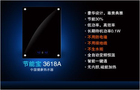 八、防电子漏电保护:当电路漏电时,无内胆磁能热水器将自动断电,保护电路。