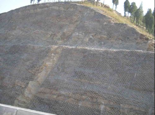 产品特性:作用原理上类似于喷锚和土钉墙等面层护坡体系,但因其柔性特征能使系统将局部集中荷载向四周均材质:钢丝绳网、普通钢丝格栅(常称铁丝格栅)和TECCO高强度钢丝格栅 匀传递以充分发挥整个系统的防护能力,即局部受载,整体作用,从而使系统能承受较大的荷载并降低单根锚杆的锚固力要求 。