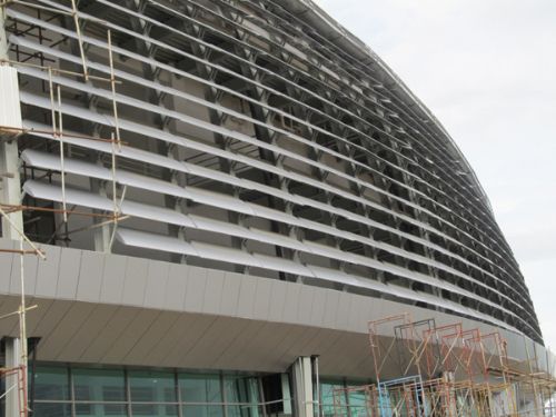 圆管铝方通天花特点:具有开放的视野、通风、透气、其线条明快整齐,层次分明,安装后整个空间和谐柔美的立体线条感,体现了简约明了的现代风格。圆管铝方通天花是一种室内装修产品,它以美观,耐用,安全,深得人们的喜欢。铝天花产品主要以AA级铝材做材料,可以防火,防潮。防霉变。安装起来牢固,十年不变色。铝天花板风格多样化,可以满足人们不同品味的需求。圆管铝方通天花安装和维护:每条圆管都是独立的,可随意安装与拆卸,无须特别工具,方便维护和保养。可将灯具、空调系统、消防设备置于天花板内,以达到整体一致的完美视觉效果。通透宽敞,是现代装饰设计的主流产品之一,便于空气的流通,排气散热的同时,能够使光线分布均匀,使整个空间宽敞明亮。圆管铝方通主要用于人流密集的的公共场合,便于空气流通,广泛适用于体育场馆、亚运体育馆、车站、商场、通道、建筑物外墙、机场、医院等开放式的场合。铝型材圆通天花可使长距离的空间显得更宽敞,使长形空间不再因为距离而产生局促感,简洁而不平板,充足的光感与次序感,更使空间充满时尚气息