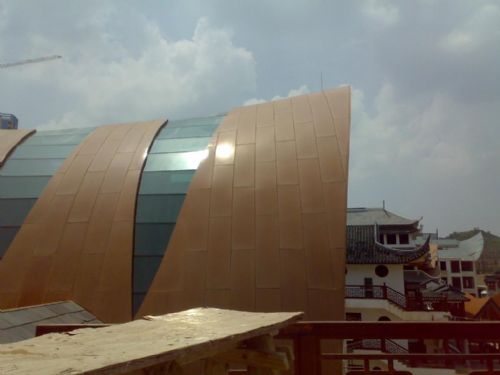 .重量轻、刚性好、强度高,结构合理,安装施工方便快捷。铝板在工厂成型,施工现场不需裁切只需简单固定 ;