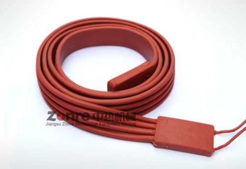 绝缘护套构成的扁形带状电缆。其特性是导电高分子复合材料具有正温度系数”PTC”特性,且相互并联,能随被加热体系的温度变化自动调节输出功率,自动限制加热的温度。“PTC”特性即正温度系数效应,是指材料电阻率随着温度升高而增大,并在一定温度区间电阻率急剧增大的特性。温控伴热电缆可以任意截短或在一定范围内接长使用,并允许多次交叉重叠而无高温热点及烧毁之虑。因此温控伴热电缆优点是:温控电伴热带电缆相应被伴热体系具有自动调节输出功率,因此不会因自身发热而烧毁,却因实际需要热量进行补偿,因此为新一代节能型恒温