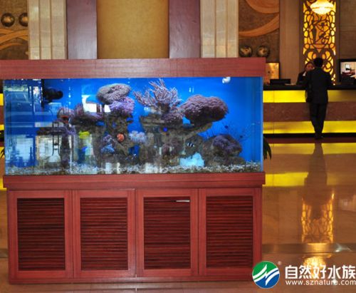 高档水族箱,上部是盛水养鱼的玻璃箱体,箱口有盖;下部是水温水质自控设备。根据对水温、水质的要求,调控水温和流速以及增氧泵的开关,这种水族箱价格较贵。