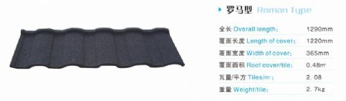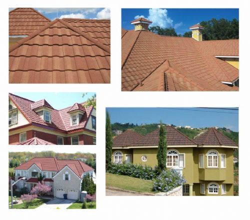 钢板为基层,表面覆着经高温陶化上色工艺的彩色蛭石,多层复合加工而形成的具现代感的环保屋顶材料。