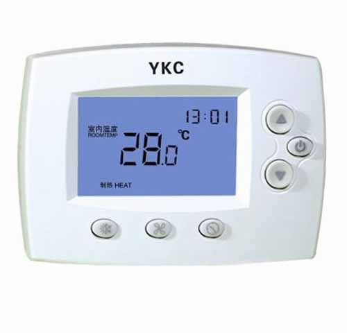 具有一体式安装,更方便、更快捷,现代感的外观设计,适合办公室、酒店、高档安居;大显示屏,LED蓝色背光,大字体的中英文显示;硅胶按键,感应灵敏,有时间显示;可按键进入或退出睡眠模式,阀门风机均为开关控制,允许安装人员选择风机连续开启或循环开启,可调节液间重置偏差值,需要时可选择停机后启动低温保护模式,可与2/3线电动阀或