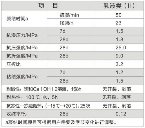 ★涂膜固化后形成致密的,似橡胶状的防水层,既有聚合物乳液的延伸性,叉有水硬性胶凝材料的高强度,易与潮湿基层粘结。