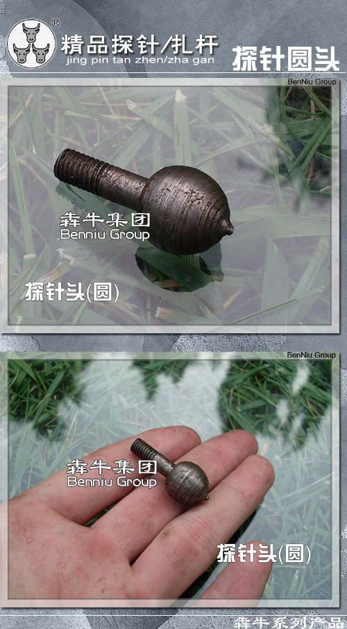 弹簧钢,高硬度达80级。探头采用优质高锰钢打造,探土锐利不费劲,扎杆不易弯曲变形。内外丝口由高精度