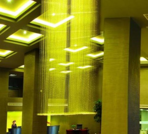 是由流动水构成, 数字水墙可自动向访客拉起水帘同时,在计算机精确操控下流动的水墙可显示出多种图案和文字信息样式。“数字水墙”不仅给人耳目一新的感觉,而且这种新概念建筑会对人们的生活带来许多便利。