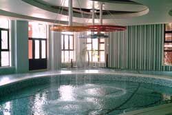 大型人造瀑布、水膜、水帘状自高处跌落的水流形态,跌落水流可为均速、也可为变速和脉冲,气势壮观豪迈。