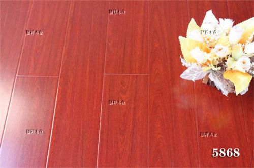 激光定位压制,表面采用高耐磨层和仿实木纹装饰层,芯层采用HDF高密度环保基材,背层采用高拉力防水平衡层。模压V型倒角,有效的避免了日常使用对地板边缘的磨损,极大的延长使用寿命。厂家直销。咨询热线:0519-88506028 QQ:550226244