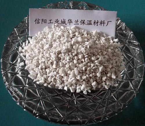 矿砂经预热,瞬时高温焙烧膨胀后制成的一种内部为蜂窝状结构的白色颗粒状的材料.其原理为:珍珠岩矿石经破碎形成一定粒度的矿砂,经预热焙烧,急速加热(1000℃以上),矿砂中水分汽化,在软化的含有玻璃质的矿砂内部膨胀,形成多孔结构,体积膨胀10-30倍的非金属矿产品.