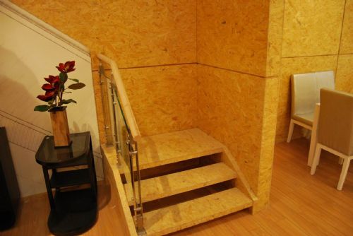 欧松板OSB具独有的浅色、细致密闭的表面,高机械稳定性以及潮湿条件下的尺寸稳定性。它的装饰质量为广大设计人员和施工人员开辟了一个全新的创造性应用空间。无论是不加处理,还是上漆,上光,打蜡,这些吸引人的木质表面都能被创造性地应用于各种可见的地方。