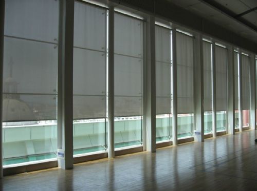 幕墙,当面 料放下时,能让室内光线柔和,免受直射阳光的困扰,达到很好遮阳效果,当升起时它的体积,又非常小,以致于不易被察觉。卷帘面料,色彩,图案,工艺有多种,制作上又分手动