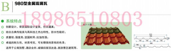 琉璃瓦建筑材料,采用特殊烤漆,色彩丰富,古典高雅,为您的建筑画龙点睛。其自重轻,强度高,防水性好,安装方便、快捷,可广泛应用于别墅屋顶、城市