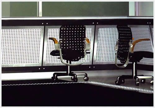 桌椅的精美装饰孔板,可以根据需要做成不同的形状,网孔也是多变多样。微孔板有良好地隔音效果,所以经常用于一些发