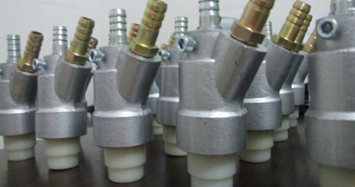 喷砂机B型直插式和罗纹式铝合金压铸喷砂枪,此枪外观亮丽,酷似不锈钢表面但具有铝合金的轻巧易用特点,*主要此枪为出口设置,枪体无气泡,由铝合金经特殊流程一次性压铸而成,质量保证,使用寿命长.是用户选换喷砂枪的*佳选择.
